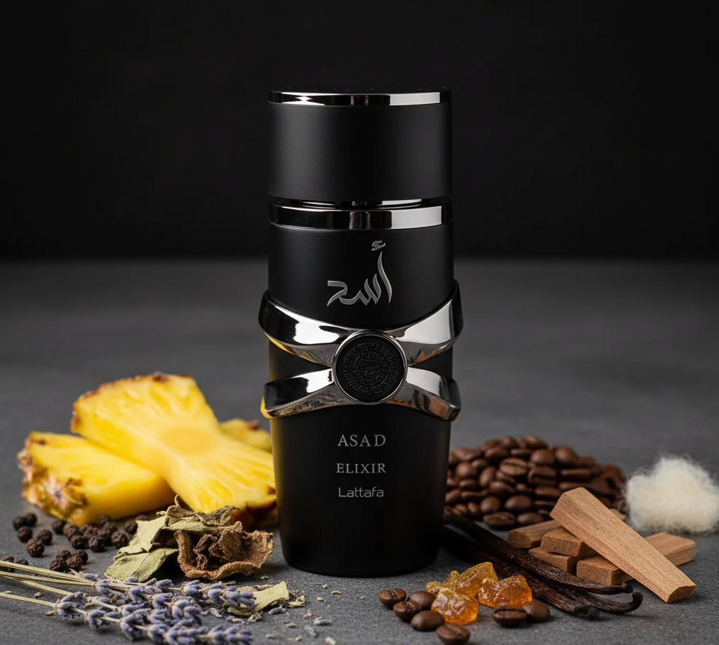 Asad Elixir de Lattafa est une fragrance orientale boisée et ambrée, symbole d’élégance et de puissance.